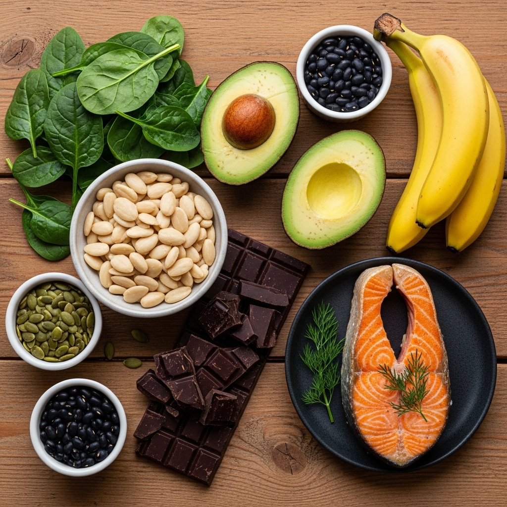 간식으로는 다크 초콜릿이나 호박씨를 추천합니다. 카페인이나 알코올은 마그네슘 배출을 증가시키므로 과도한 섭취를 피하는 것이 좋습니다.